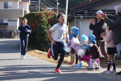 低学年、高学年の声援を受けて、力いっぱい走りました。