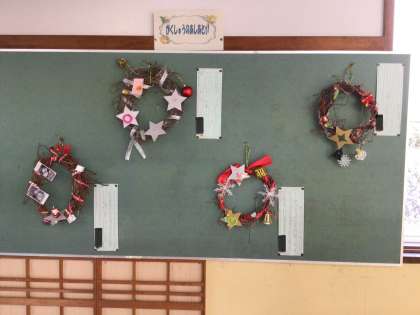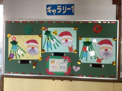 1階廊下の掲示板には、1年生と7・8組の子どもたちの作品が飾られています。
