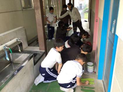 ヘルシー委員会は、トイレ前のペンキの塗り直し。