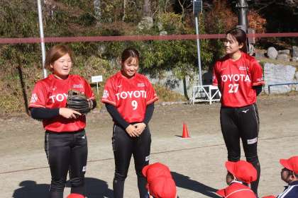 トヨタ自動車女子ソフトボールチーム「レッドテリアーズ」の選手が、ボールの投げ方を指導してくださいました。