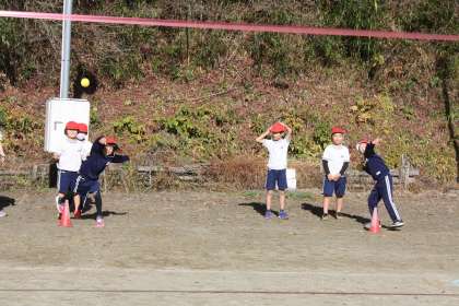 次に、4チームに分かれてのリレー、その後、実際にソフトボールを投げてみました。