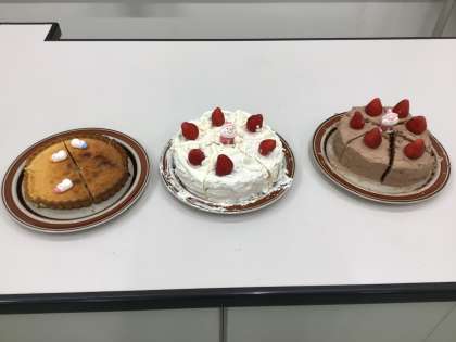 ショートケーキ、チーズケーキ、チョコレートケーキの3種類です。