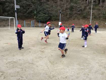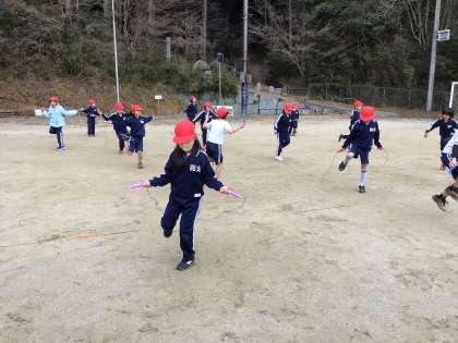 見ている私は寒くてたまらないのですが、跳んでいる子どもたちは元気いっぱいの1・2年生です。