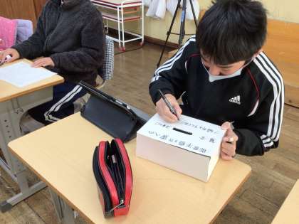 被害の様子を最新の情報で調べたり、募金箱を作ったりしていました。