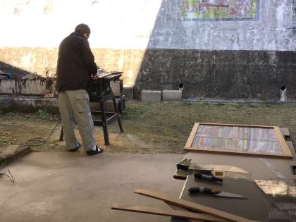 今日は、理科・家庭科室の戸棚に引き扉を作ってくれました。