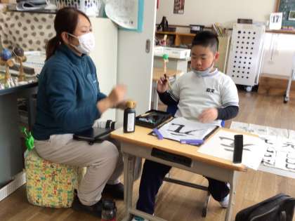 7・8組 書写「まがりに気をつけて書こう」