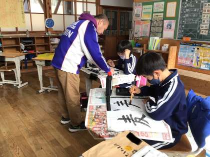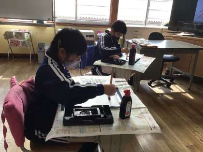 二つ並んだ左払いの方向の違いに気がついて、丁寧に筆を運んでいました。
