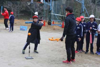3・4年生 野球体験教室 公開日 2024/01/22 更新日 2024/01/22 各学年から トヨタ自動車硬式野球部の河原右京選手(内野手)と今井脩斗選手(内野手)に来校いただき、3・4年生が野球体験教室に参加しました。 朝の集会で大谷翔平選手の「野球しようぜ!」のメッセージを受け取ったばかりの良いタイミングでした。 早速、準備運動をした後、キャッチボールをしました。 次に、ティーバッティング。 その後、ゲーム形式の練習をし、紅白戦をしました。