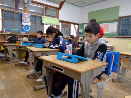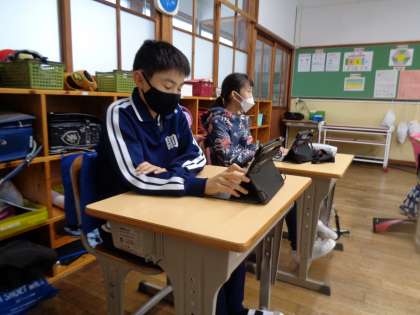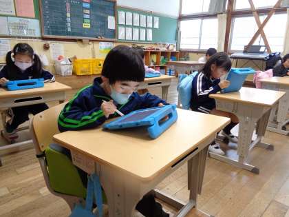 水曜日の朝活は学習用タブレットを使ったドリル学習です。