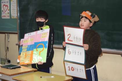 5年生は学校周辺と恩真寺湿地の自然について、比較調査したことを発表しました。