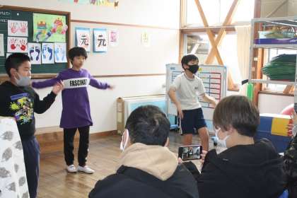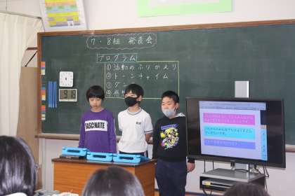 7・8組は、1年の学習の足跡を紹介するとともに、自信をつけてきたトーンチャイムとダンスの発表をしました。