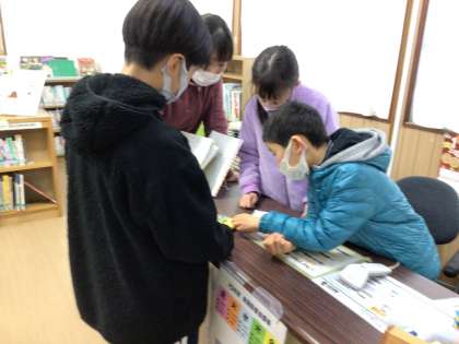 図書館では、今日から始まった「図書館まつり」のポイントを貯めようと何人かの子どもたちが集まっていました。
