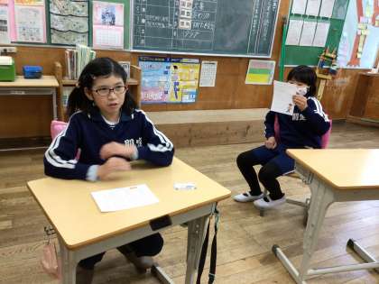 教室では、こちらも今日から始まった2月の詩の暗唱チャレンジの練習をしている子どもがいました。