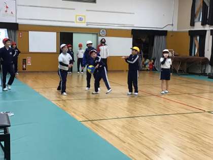 集会室では、学年の枠を越えてドッジボールで体を動かしている子どもたちがいました。