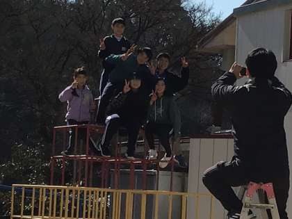 6年生が担任と一緒に記念写真を撮っていました。