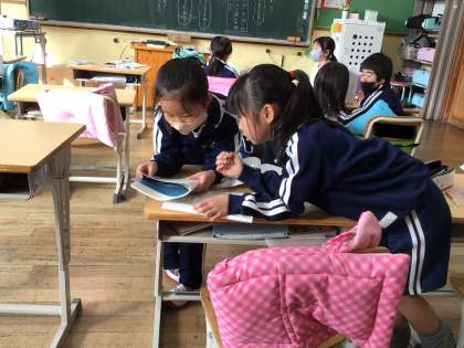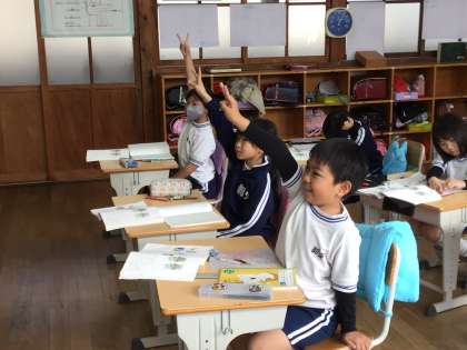ペアで話をしたり、みんなに向けて説明したりしていました。