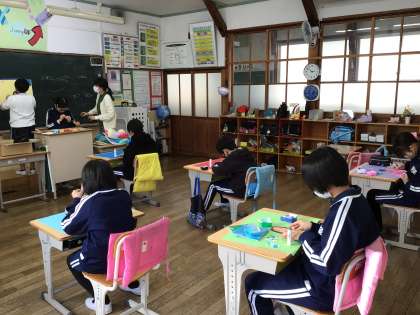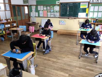 今日は4年生と一緒に、6年生への贈り物をつくっていました。