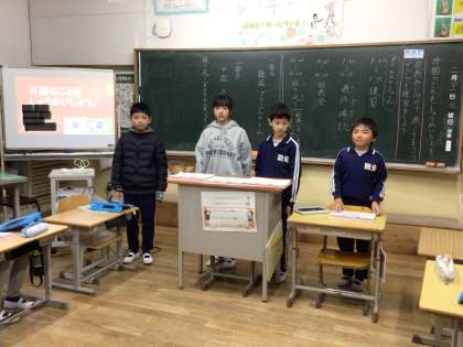 各国の文化や生活様式など、一人一人が興味を持って調べたことを説明しました。