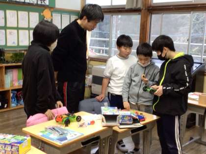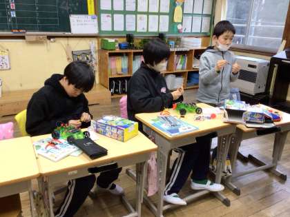 コイルの巻数や電池との接触など、考えたことをみんなで共有しながら、速さを競い合っていました。