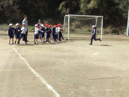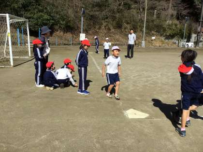 キックベースボールをするために、ベースランニングの練習をしていました。