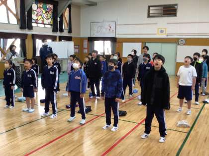 在校生の歌練習 公開日 2024/02/27 更新日 2024/02/27 学校の特色ある活動 朝活の時間を使って、在校生の卒業式の歌の練習がありました。 これまでは、音楽の授業や朝の会でそれぞれのパートを歌ってきました。 今日は初めて合わせて歌いました。 今までの練習の成果か、初めてとは思えないハーモニーが集会室に広がりました。 これからさらに心を込めて練習し、卒業生へのはなむけの歌となるように頑張ります。
