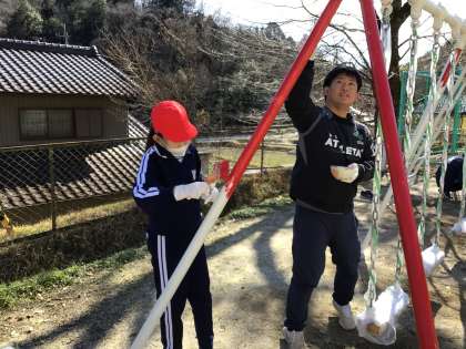 卒業を前に、6年生が学校への奉仕活動に取り組んでいます。