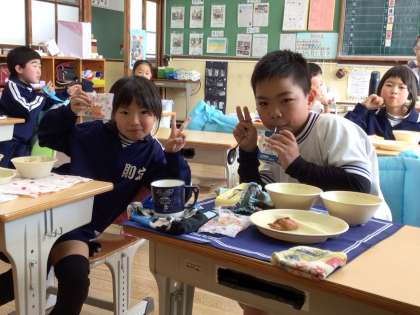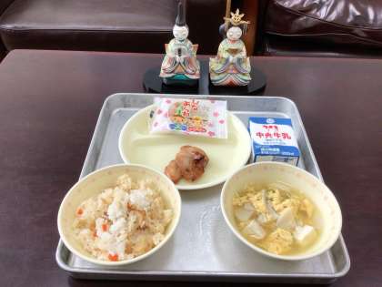 今日の給食は、一足早くひなまつりをお祝いする献立でした。