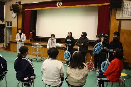 一輪車は、6年生が奉仕活動の一環として組み立ててくれたこともあわせて紹介しました。