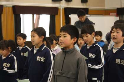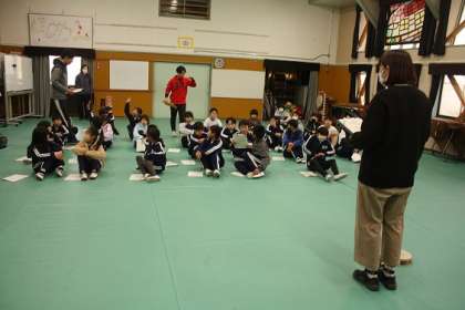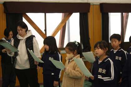 分担された言葉、全体で揃えて言う言葉など、声の大きさや話す速さを1〜5年生で確認しながら練習しました。