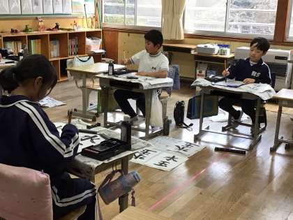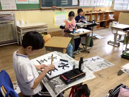 3年生になって始まった毛筆ですが、筆の使い方も様になってきました。