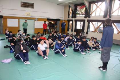 全校集会では、今から13年前、東北地方で大きな地震があり、多くの人が亡くなり、今も行方が分からない人もいることを話しました。