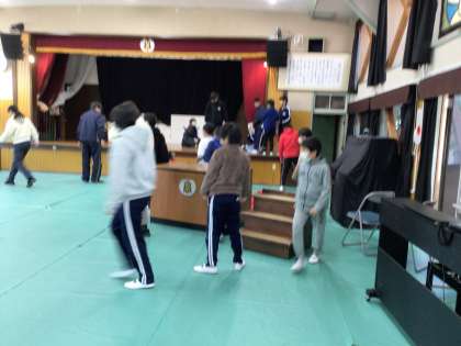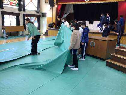 舞台上も掃除をし、卒業生が気持ちよく入場できるようにしました。