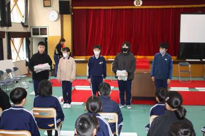 今日は、学校の代表として5年生が受け取りました。