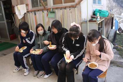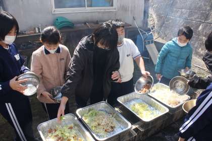 お互いの頑張りを称え、苦労をねぎらおうと、一緒にやきそばを作って食べました。