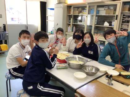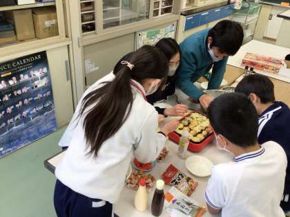 担任が準備をしたたこ焼き器を使っての、たこ焼きパーティー。