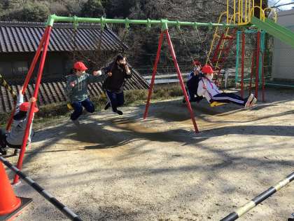 今日は、6年生が塗り直したブランコで遊んでいました。