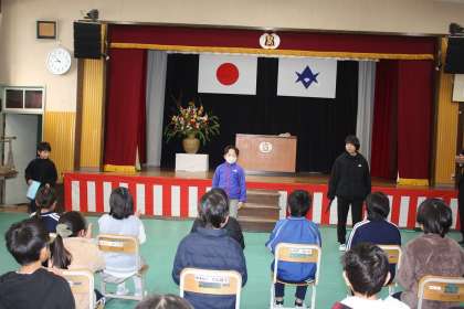1・3・5年生の代表児童のスピーチ発表の後、修了証を授与しました。