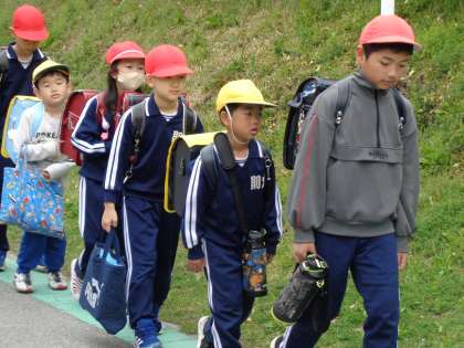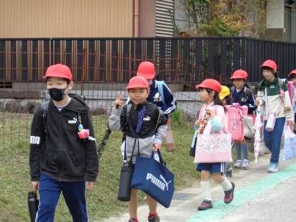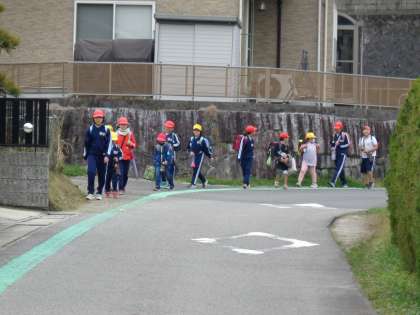 元気いっぱいの挨拶と、しっかり並んで歩く様子が、気持ちの良い朝のスタートです。