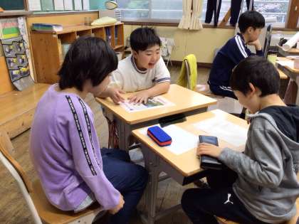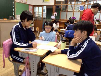 担当の係に分かれて、6年生が5年生をリードしながら話し合いを進めていました。
