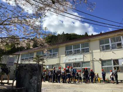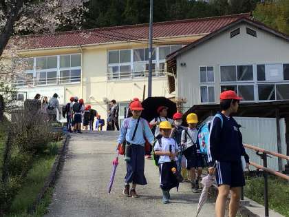 下校時には青空が広がり、子どもたちは元気いっぱいに学校を後にしました。