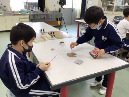 マッチでろうそくに火をつけて、空気の様子を観察していました。