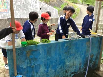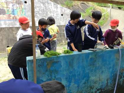 6年生が昨年度世話をしてきたメダカを5年生に引き継ぎました。