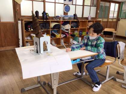 細かいところまでよく見て、スケッチをしていました。