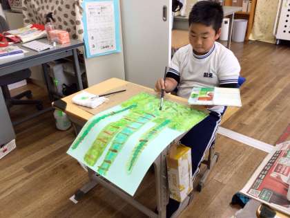 5月に掲示する絵を描いていました。