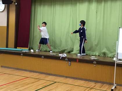 明日のひよこ集会(1年生を迎える会)のリハーサルをしていました。