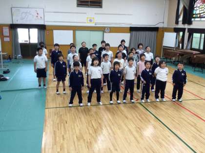 5時間目には、全校で校歌を歌っているところを撮影しました。