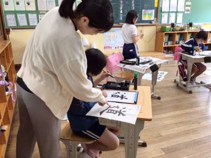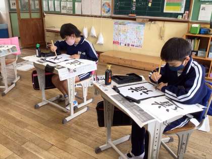 「しんにょう」の形や部分の組み立て方に気をつけて、筆を運んでいました。