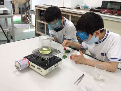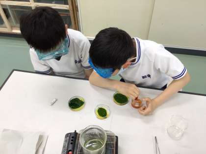 ジャガイモの葉を使って、養分ができたかどうかを調べる実験をしていました。