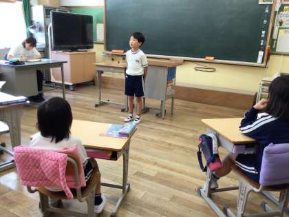 今日は、漢字の練習に取り組んでいる学年、スピーチに取り組んでいる学年、詩の暗唱に取り組んでいる学年がありました。