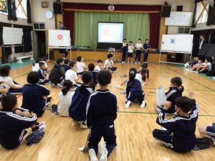 安全に学校生活を送るために気をつけることなどを、○×クイズで確認しました。